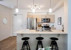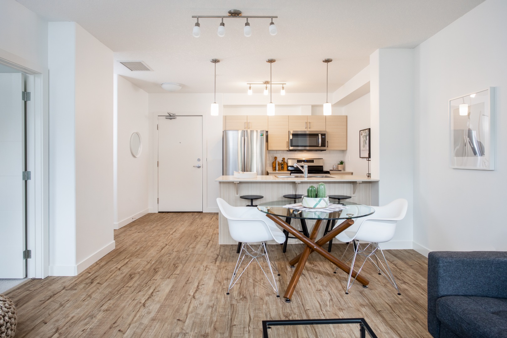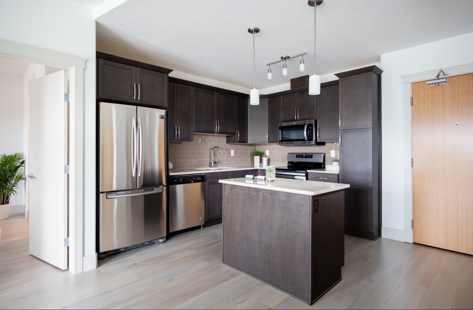 MOVE-IN READY CONCRETE BUILD at Stafford Greens! Discover this spacious 2 bed & 2 bath condo located in the beautiful master planned community of Granville both built by the award winning Alldritt Properties. Granville is located West of Edmonton offering everything you need right at your doorstep, from restaurants, cafes, shopping, parks and a new K-9 school. This beautiful ground floor condo unit has a private 470 sqft patio complete with gas BBQ hookup. The functional living area offers wood embossed laminate floors. The kitchen has designer cabinets with soft close, sleek quartz countertops, ample storage throughout plus energy efficient stainless steel appliances. Additional features include: A/C, 1 parking stall located in a underground heated parkade, secure keyless garage and lobby entrances, protected by the Alberta New Home Warranty Program. Optional upgrades available.