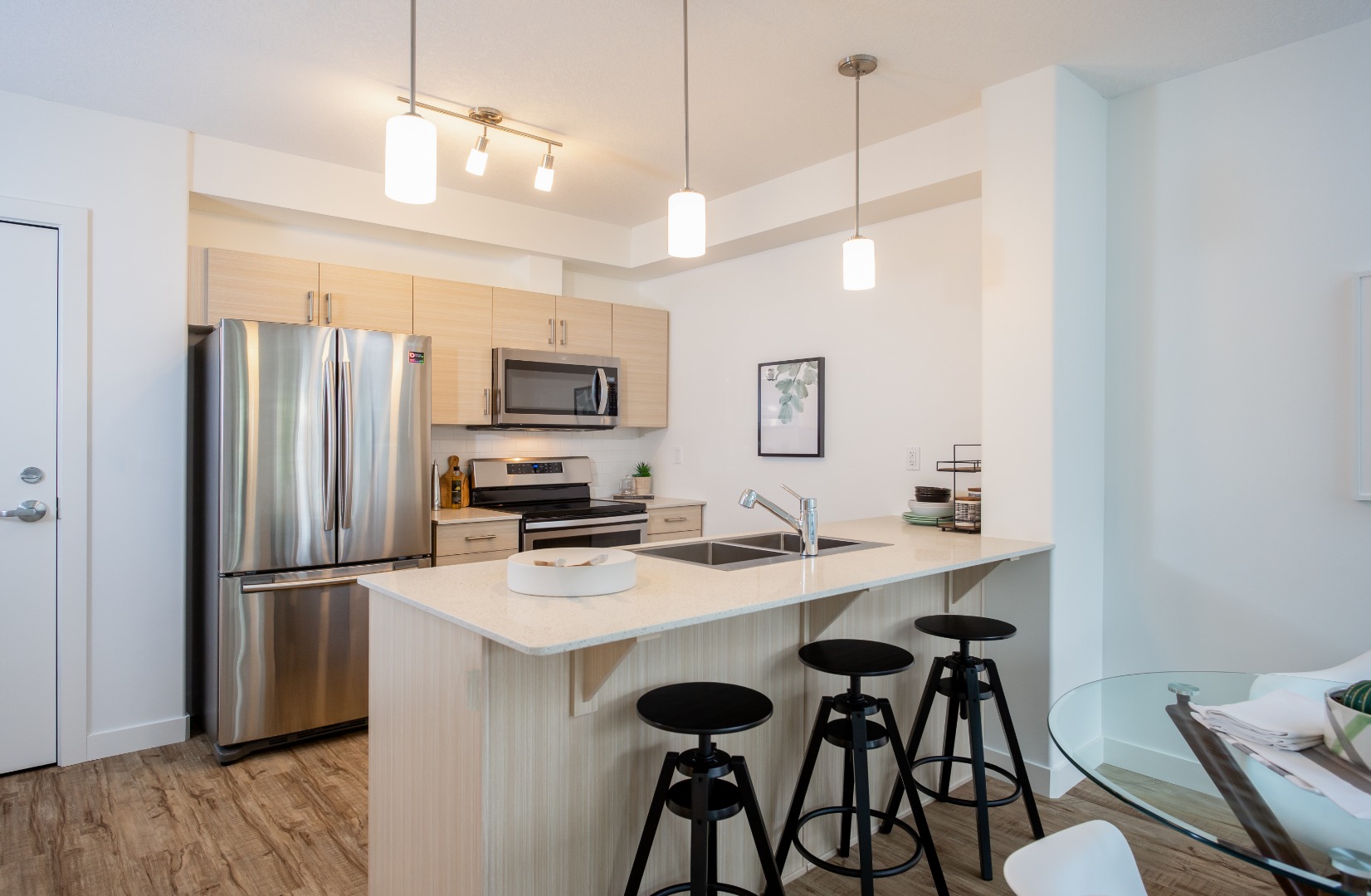 MOVE-IN READY CONCRETE BUILD at Stafford Greens! Discover this spacious 2 bed & 2 bath condo located in the beautiful master planned community of Granville both built by the award winning Alldritt Properties. The community of Granville located West of Edmonton has everything you need right at your doorstep, from shopping, restaurants, cafes, parks & new K-9 school. Located next to the Anthony Henday & Whitemud allowing a quick 30 min drive to Downtown & 10 mins to West Edmonton Mall. This 3rd floor unit has a lrg 108 sqft balcony with gas BBQ hookup perfect for entertaining. The functional living area offers durable wood embossed laminate flooring. The kitchen has designer cabinets with soft close mechanisms, sleek quartz countertops, ample storage throughout plus energy efficient SS appliances. Additional features: A/C, 1 parking stall located in a secure underground heated parkade, secure keyless garage & lobby entrances, protected by the Alberta New Home Warranty Program. Optional upgrades available.